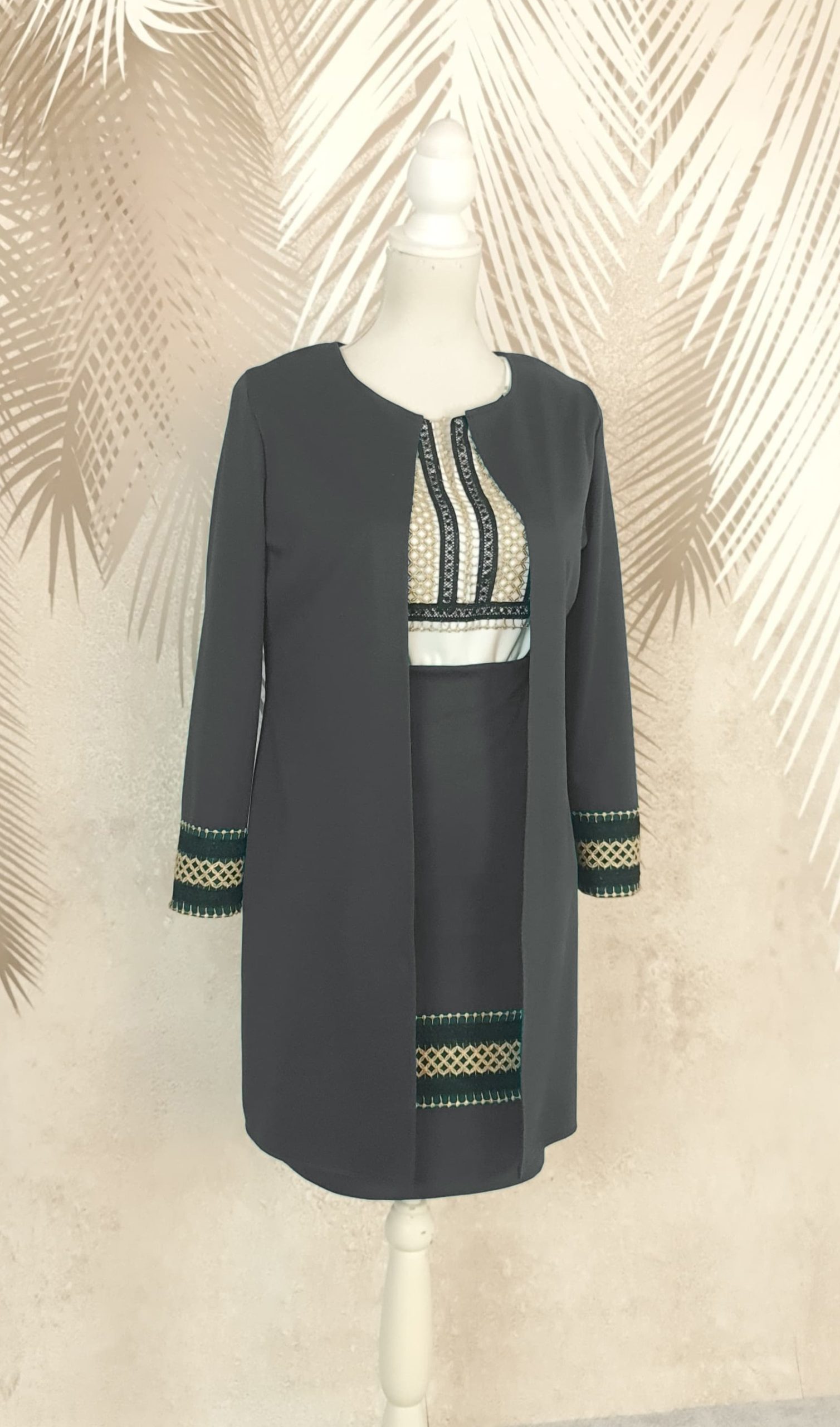 Calitatea materialelor, croiala atentă și broderiile delicate fac din acest compleu o alegere de lungă durată, ideală pentru femeia care apreciază moda rafinată, eleganța și versatilitatea într-o singură ținută.