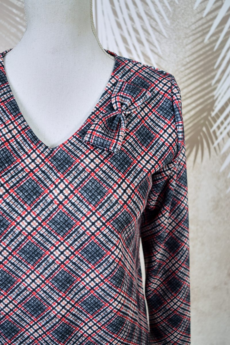 Designul său unic se remarcă prin fundița delicată, care completează de minune aspectul sofisticat al bluzei. Acest detaliu fin transformă bluza într-o piesă versatilă, potrivită atât pentru ținutele office, cât și pentru cele de seară. Gulerul discret și croiala lejeră evidențiază silueta fără a compromite libertatea de mișcare, iar mânecile lungi adaugă un aer de eleganță subtilă.