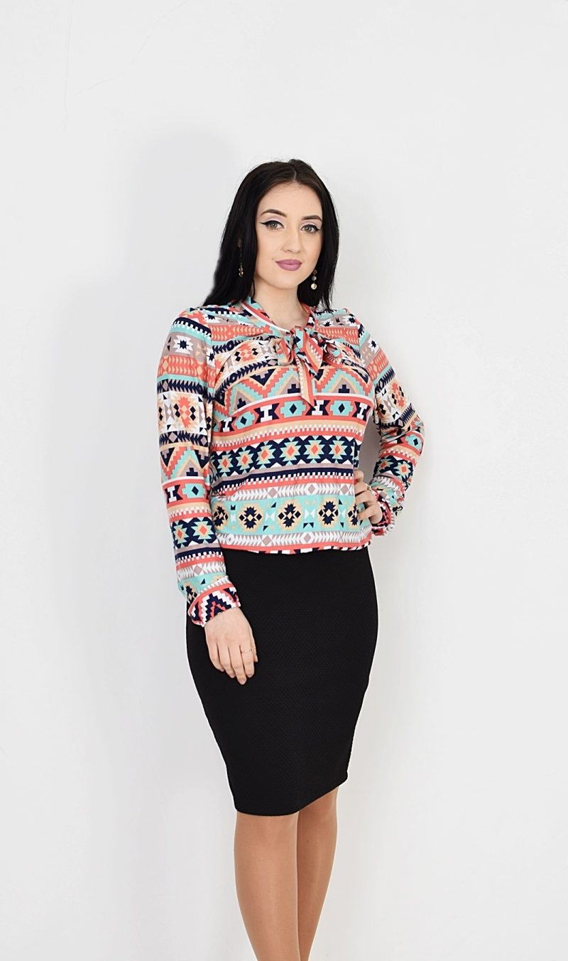 Bluza cu motive adaugă un strop de personalitate întregului ansamblu, transformându-l într-o expresie a stilului individual. Acest detaliu subtil aduce o notă de eleganță și farmec, făcându-l potrivit pentru diverse ocazii.