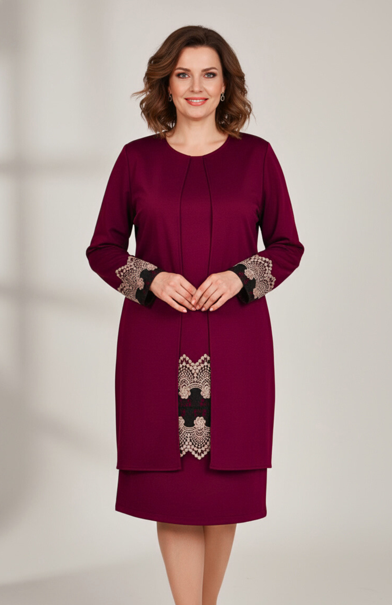 Compleul Tania este format din cardigan si rochie din material plin, elastic, rochia are broderie aplicata in partea de jos, iar cardiganul are broderie aplicata. Tinuta eleganta, poate fi imbracata la evenimente sau chiar zi de zi. Fie că este vorba despre o petrecere de seară, un eveniment social sau o ocazie specială, compleul visiniu cu broderie se potrivește perfect oricărui moment memorabil din viața unei femei.