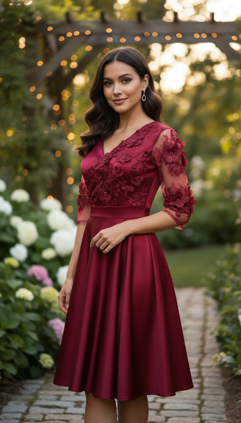 Rochie de ocazie din tafta visinie si broderie 3D, alegerea perfectă pentru a străluci la nunți și evenimente speciale. Această rochie excepțională este concepută pentru a aduce un plus de glamour și sofisticare în garderoba ta de evenimente.