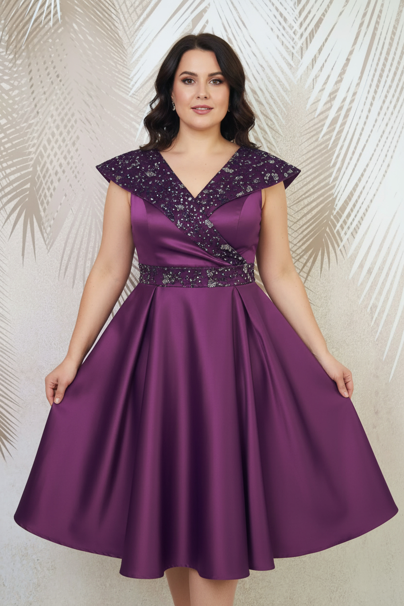 Rochie de ocazie mov-pruna din tafta si gliter Victoria