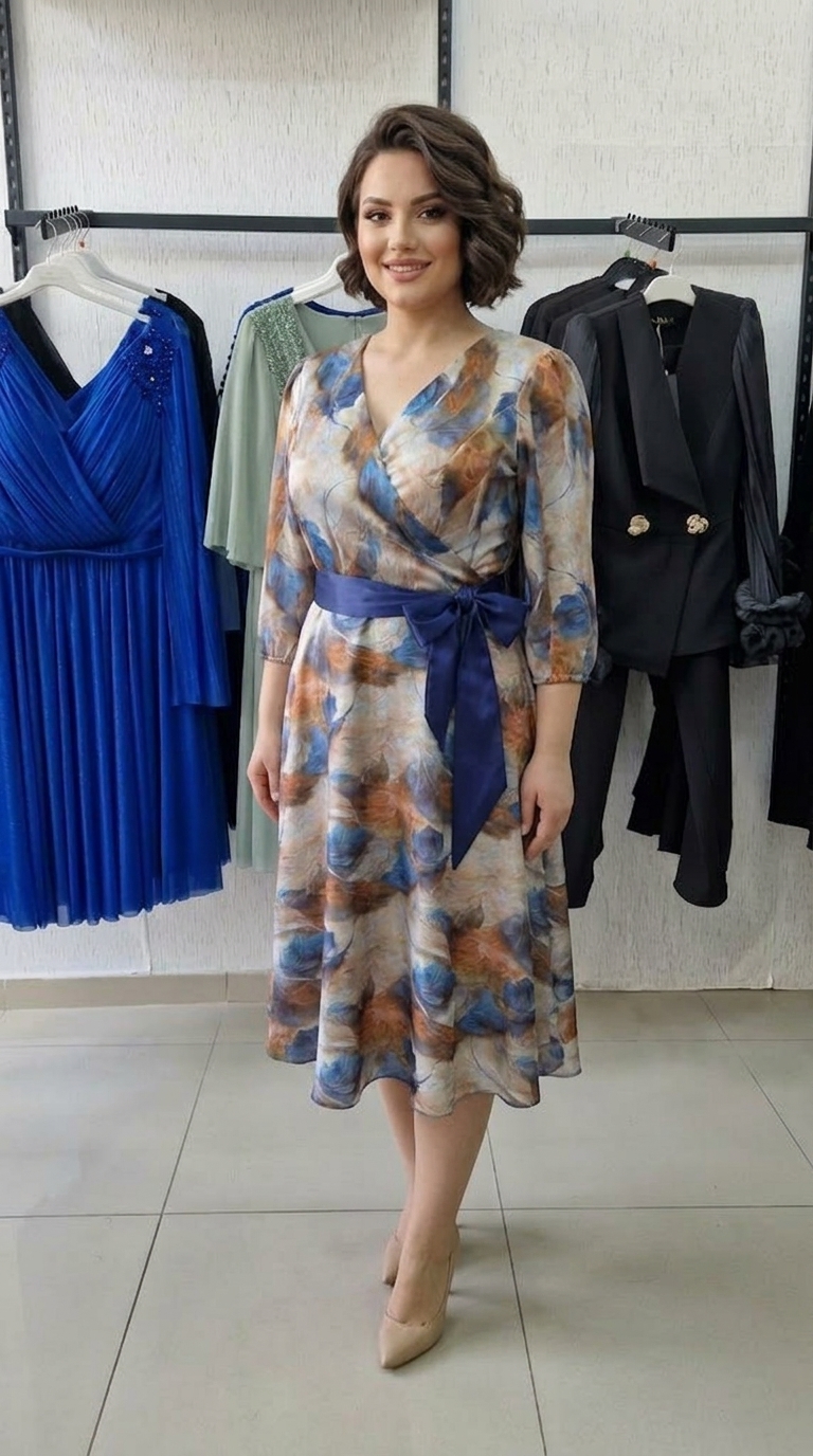 Rochie eleganta cu imprimeu albastru Smaranda este expresia perfectă a rafinamentului și a feminității moderne, fiind creată special pentru femeile care își doresc să impresioneze prin stil și bun gust. Cu un design delicat și o cromatică echilibrată, această rochie se remarcă prin imprimeul artistic în nuanțe de albastru, bej și accente calde de maro, oferind un look sofisticat și ușor de integrat în diverse ținute de ocazie.
