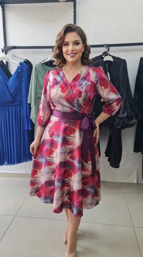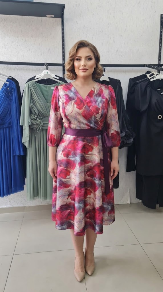 Această rochie elegantă damă este ideală pentru evenimente precum nunți, botezuri, petreceri sau întâlniri speciale. Poate fi accesorizată cu pantofi stiletto nude sau negri și o geantă minimalistă pentru un look complet și rafinat. De asemenea, este o alegere excelentă pentru femeile care caută rochii elegante de ocazie, rochii midi elegante sau rochii cu imprimeu floral moderne.