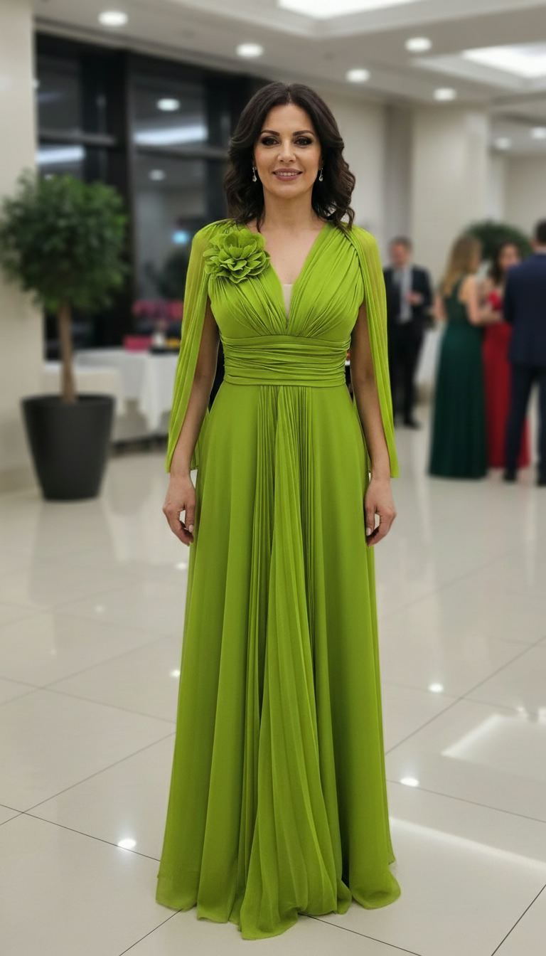 Această rochie elegantă verde este ideală pentru diverse tipuri de siluete, datorită croiului care avantajează și subțiază vizual. Poate fi accesorizată cu sandale fine cu toc, clutch-uri elegante și bijuterii discrete pentru un look complet și rafinat.